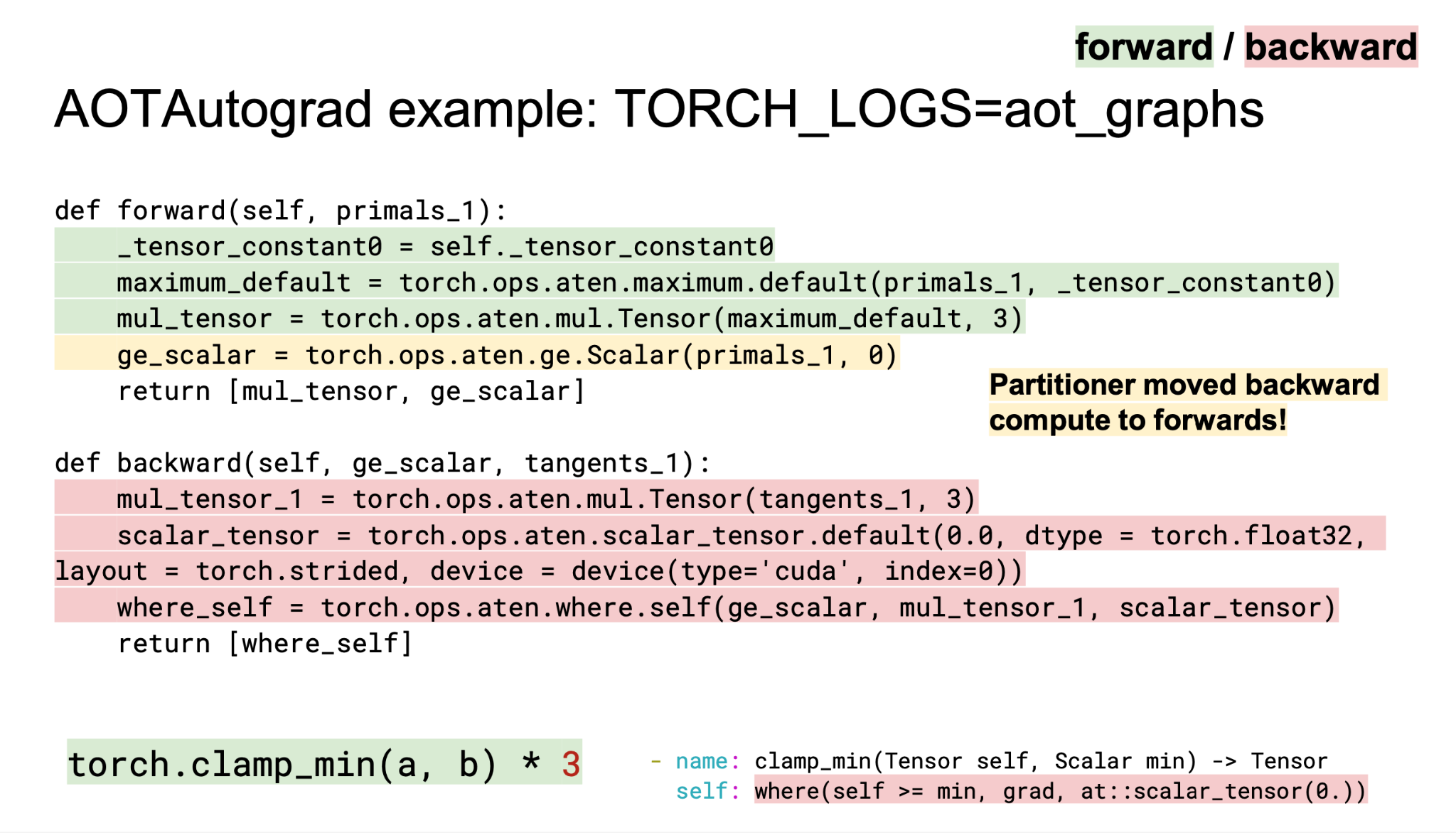 - Forward와 backward를 각각 backend compiler로 컴파일합니다.
