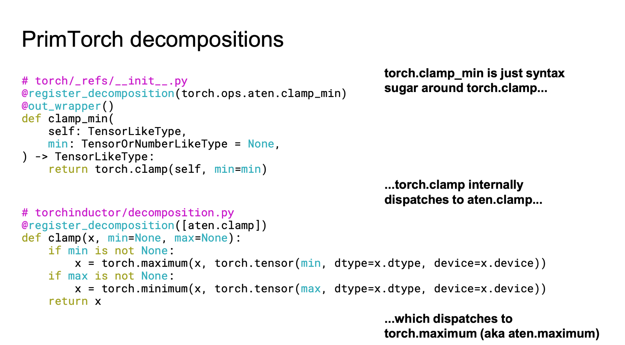 # E: Decomposition (Torch IR → ATen IR → Core ATen IR → Prims IR)