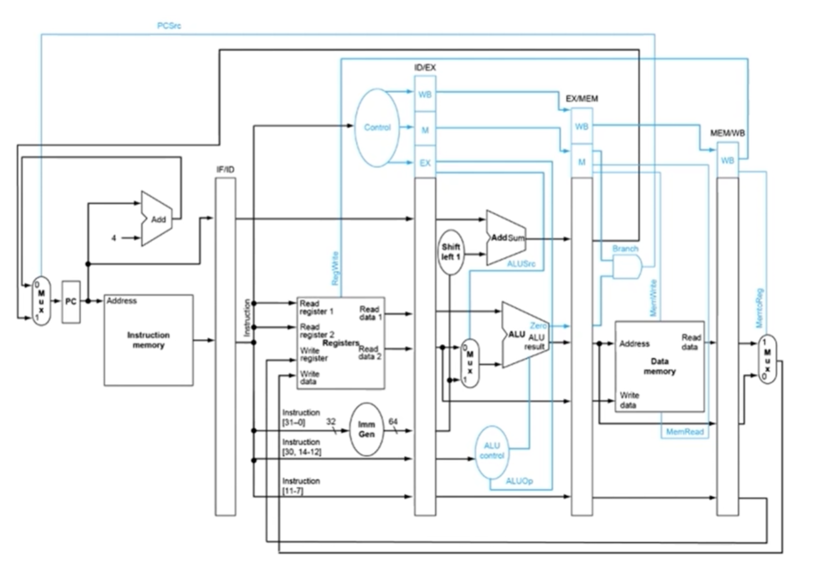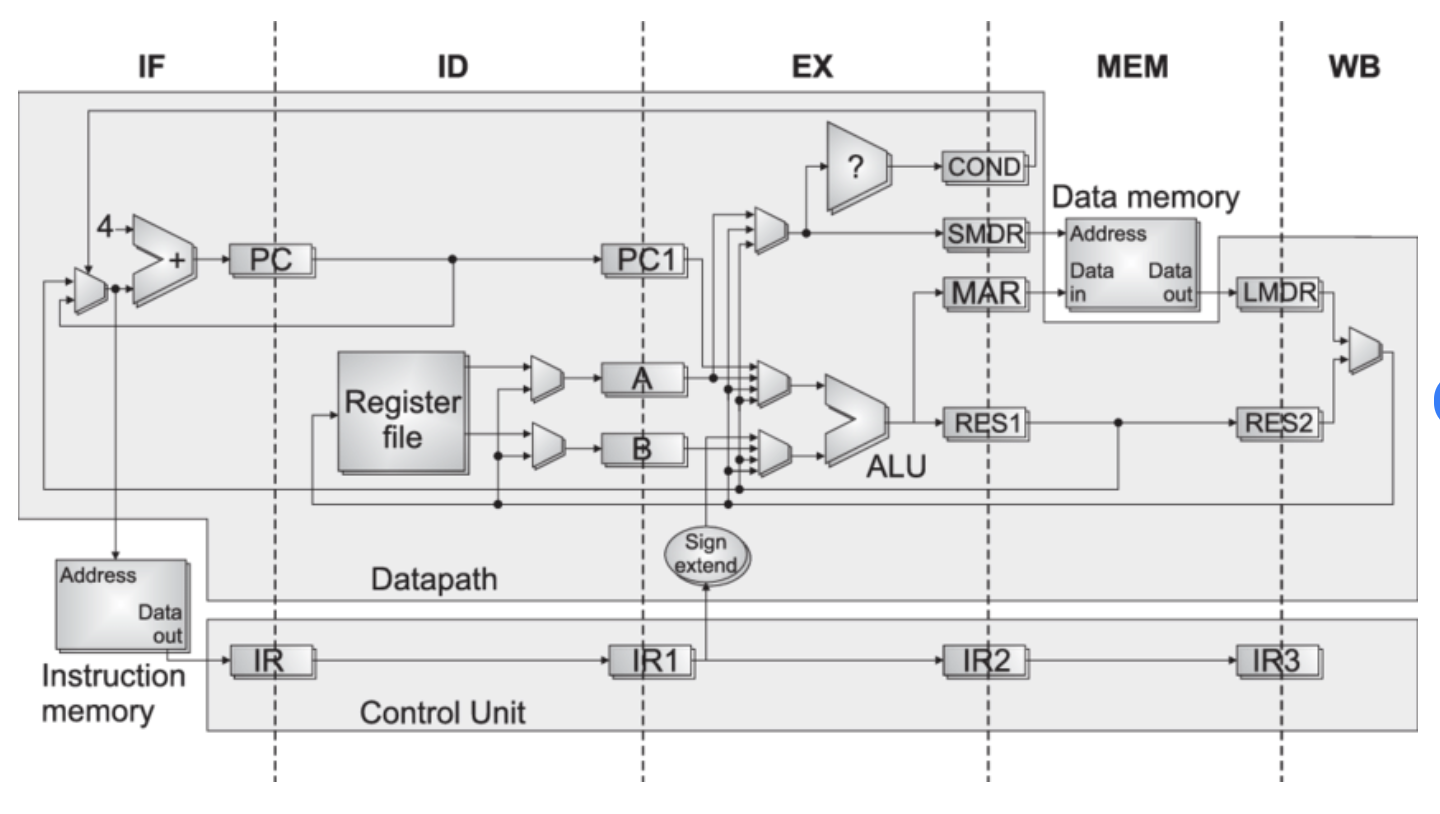 파이프라인의 상세 구조를 들여다보면, 디코딩된 신호가 레지스터 파일, ALU, 다음 스테이지의 입력으로 분기하는 것을 볼 수 있습니다. 이처럼 ISA만으로는 마이크로아키텍처의 구조를 파악할 수 없으며, 이것이 바로 ISA와 Microarchitecture를 분리한 핵심 이유입니다.