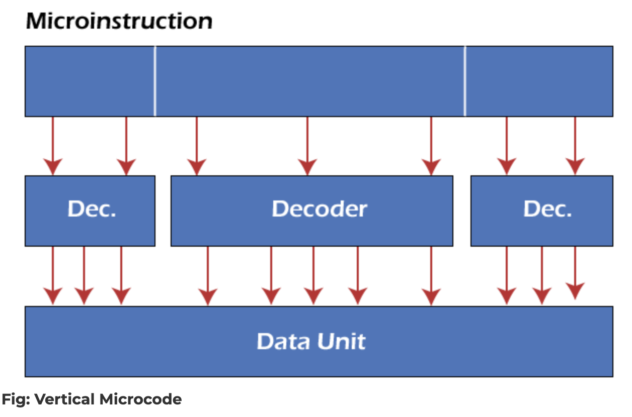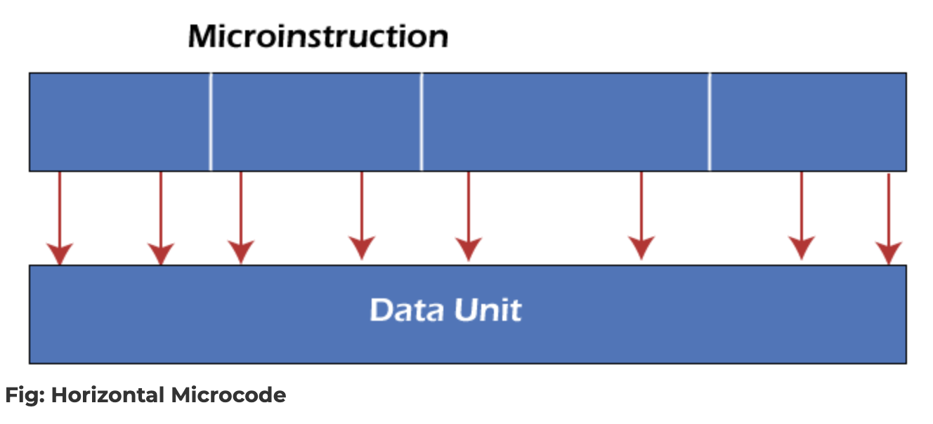 일반적인 RISC/CISC 명령어 세트는 Vertical Encoding 방식을 사용합니다. 명령어의 각 비트 역할이 하드웨어 동작에 직접 노출되지 않고, 디코딩을 통해 하드웨어 제어 신호로 펼쳐집니다. 이 방식에서는 파이프라인 아키텍처의 디테일이 소프트웨어에 노출되지 않으므로, 하드웨어가 자체적으로 최적화를 수행할 수 있습니다.